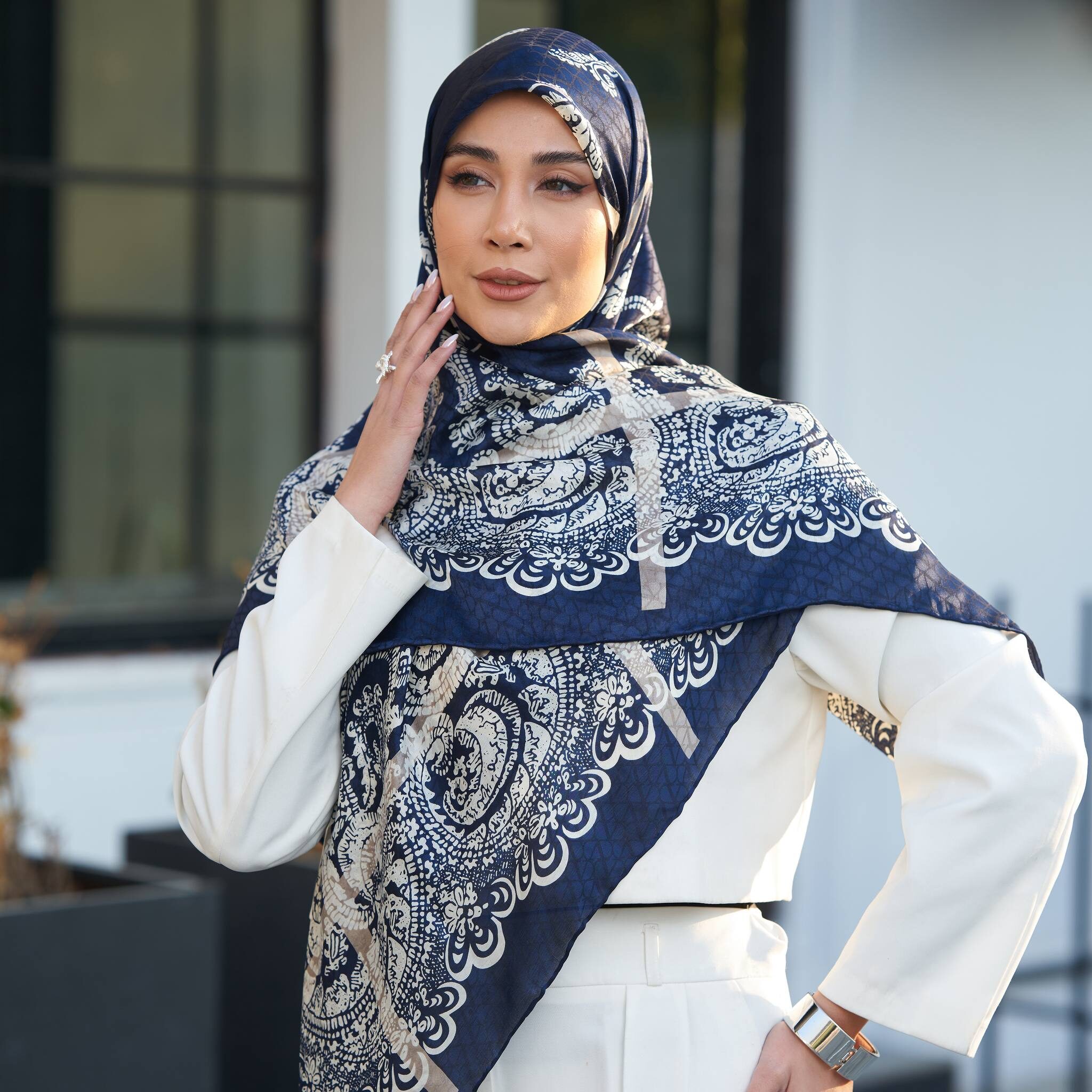روسری ابریشم ژاکارد قواره 140 30198